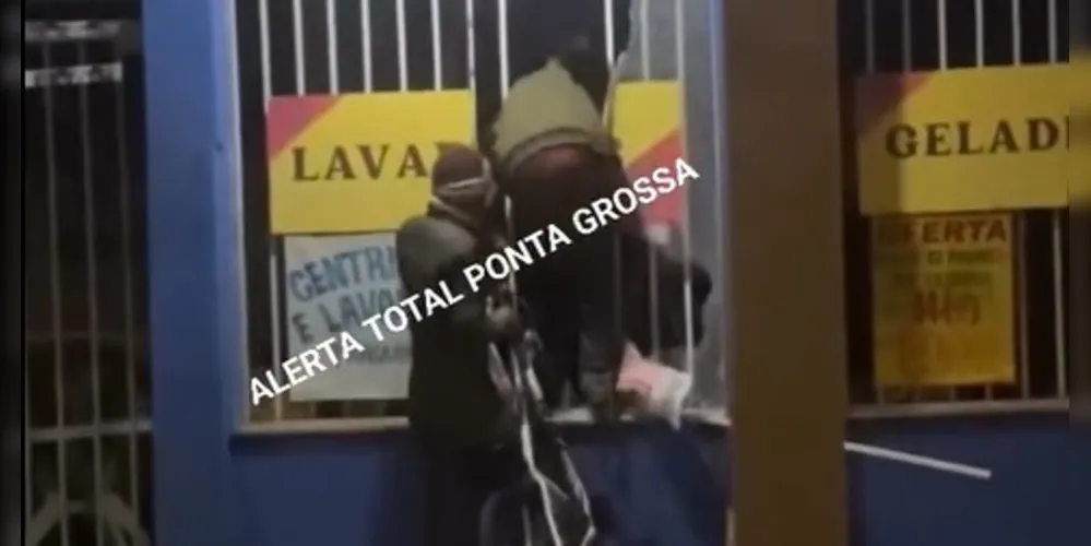 Um popular flagrou o exato momento em que dois homens arrombaram uma loja de móveis na Avenida Souza Naves, na entrada do bairro Sabará em Ponta Grossa. As imagens mostram a dupla quebrando o vidro do estabelecimento e fugindo em seguida com os pertences.