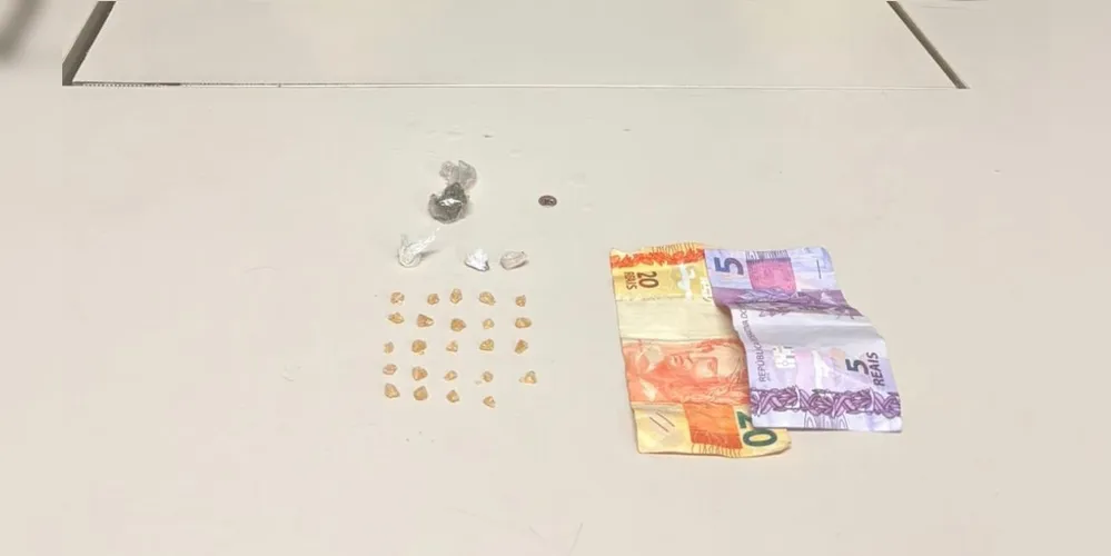Durante a ação, os policiais visualizaram um indivíduo em atitude suspeita e realizaram a abordagem. Após busca pessoal e averiguação no local, foram encontradas 27 porções de substância análoga ao crack, uma porção de maconha e a quantia de R$ 25,00 em dinheiro, elementos que caracterizam indícios da prática de tráfico de drogas.