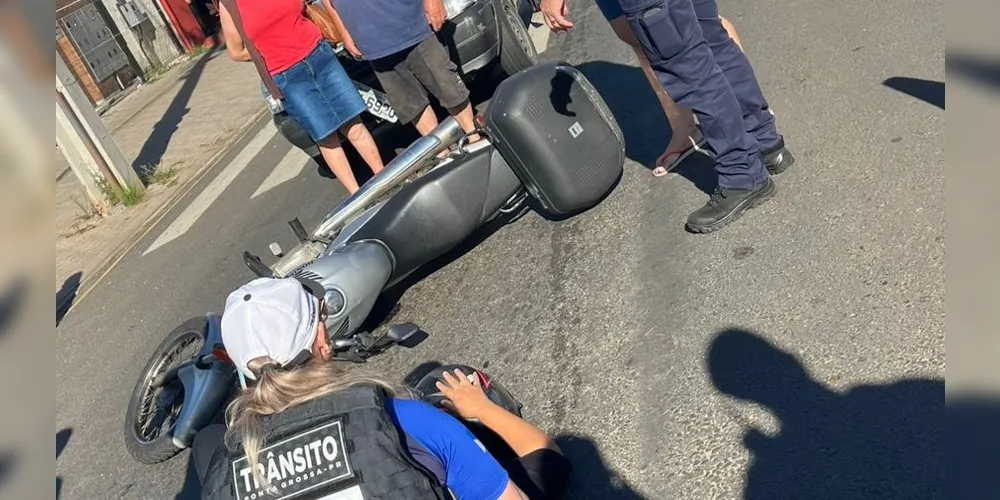 Um acidente envolvendo uma motocicleta e um carro foi registrado no início da tarde desta sexta-feira (13) na rotatória da Avenida D. Pedro II, na Praça Curitiba, em Ponta Grossa.