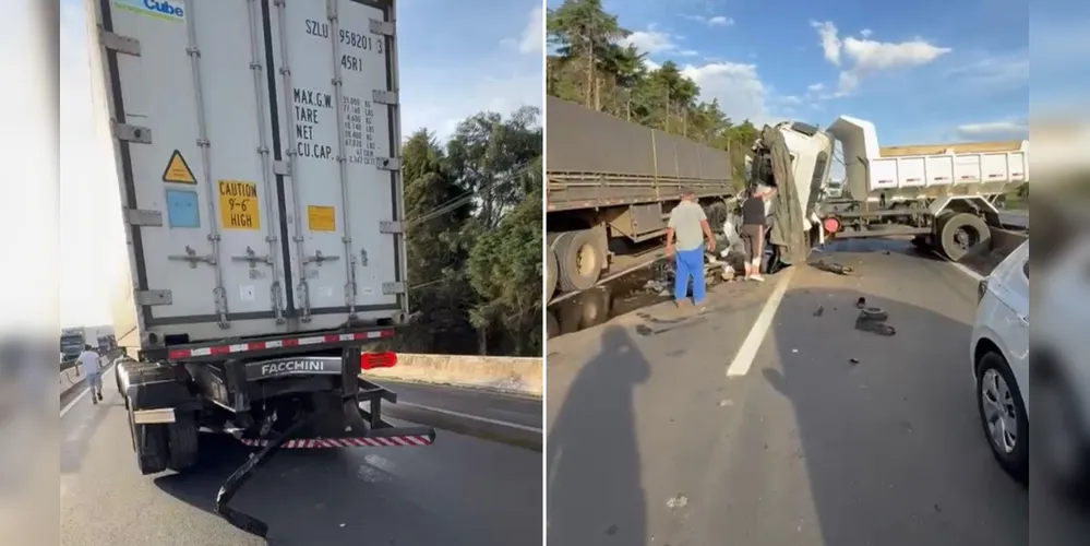Um grave acidente foi registrado próximo ao viaduto do Santa Maria, na BR-376, sentido norte, em Ponta Grossa, no fim da tarde desta terça-feira (17). A colisão traseira foi entre dois caminhões, uma das vítimas estaria encarcerada.