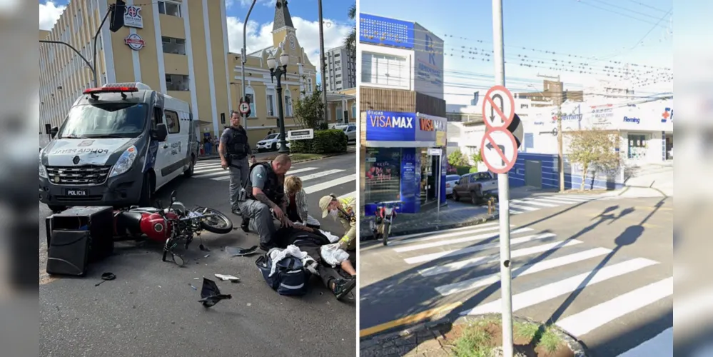 - Acidente foi causado por uma conversão proibida realizada por uma van da Polícia Penal, no Centro de Ponta Grossa, com confirmação por imagens de câmeras de segurança.
