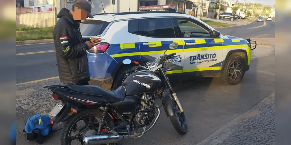 Uma motocicleta, JTA/Suzuki EN125, com alerta de furto/roubo foi localizada e recuperada pelo Patrulhamento de Trânsito Viário, em Ponta Grossa, na manhã desta quarta-feira (15).
