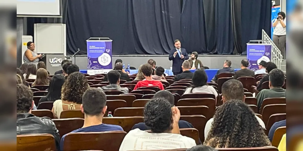 O presidente do Tribunal Regional Eleitoral do Paraná (TRE-PR), desembargador Luciano Carrasco Falavinha Souza, ministrou a palestra “Como fortalecer a democracia pelo combate à desinformação” no Grande Auditório do campus central da Universidade Estadual de Ponta Grossa (UEPG). O encontro aconteceu nessa segunda-feira (13).
