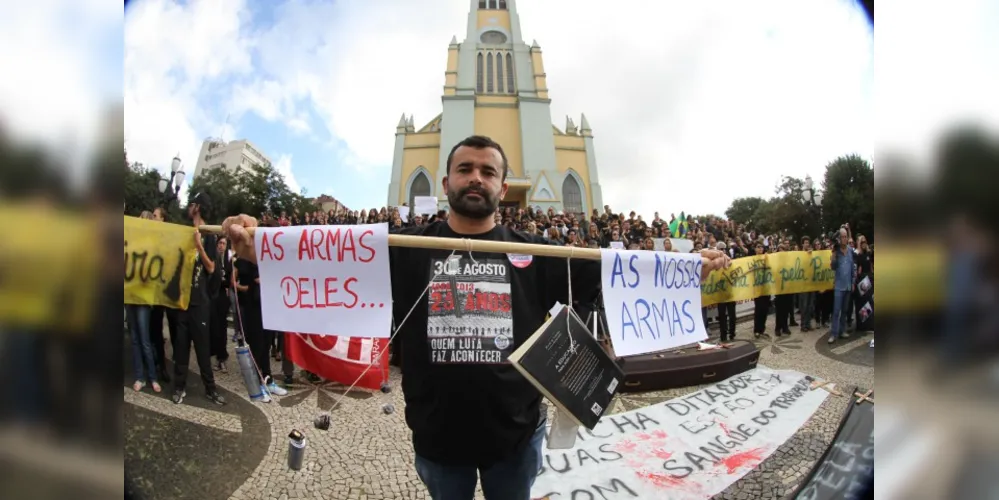Em Ponta Grossa, os professores se reuniram em frente à Igreja dos Polacos e caminharam pela Avenida Vicente Machado. Camisetas pretas, faixas, cartazes e palavras de ordem demonstraram a revolta da categoria, que foi vítima de bombas de gás e balas de borracha no Centro Cívico.