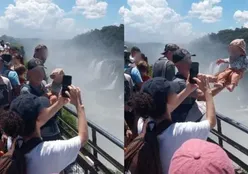 Turista se arrisca e pula grade do mirante da Garganta do Diabo, nas Cataratas do Iguaçu; veja vídeo COTIDIANO
