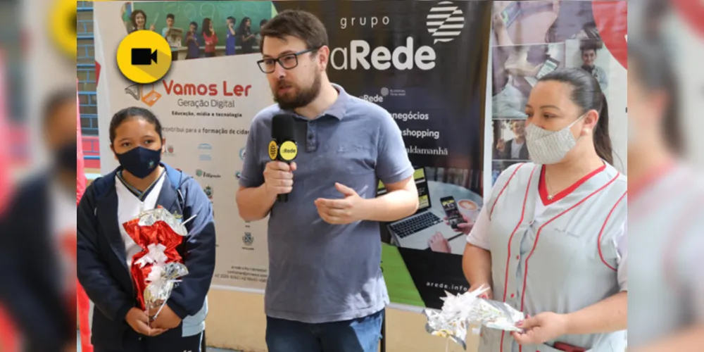 O Vamos Ler – Geração Digital esteve, na manhã desta quinta-feira (25), na Escola Municipal da Vila do Rosário, em Castro, para premiar a aluna Emily Vitória Oliveira Rodrigues, vencedora da categoria ‘Melhor Vídeo’ no Concurso 2021 de Blogues Escolares do projeto de mídia, educação e novas tecnologias do Portal aRede. Quem também foi agraciada com uma premiação foi a professora Janete Soares Machado, que leciona no 5º ano A.