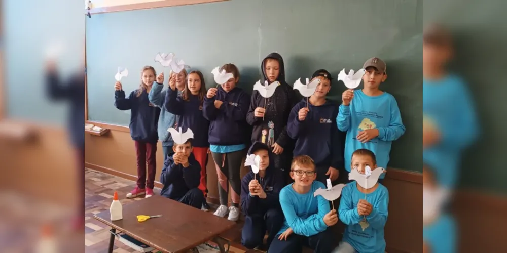 O 5º ano A da Escola Municipal Prefeito Elias Demétrio Hauagge, em São João do Triunfo, pôde desenvolver atividades sobre a paz do mundo. A professora Danieli Ochinski de Souza comenta os principais aspectos do trabalho que ocorreu no dia 20 de abril.