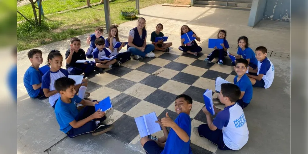 Após a finalização das produções, a turma foi conduzida ao pátio da escola, onde realizou uma roda de apresentações. “Nesse momento, os estudantes puderam compartilhar seus textos com os colegas, promovendo a socialização, a escuta atenta e o respeito às diferentes formas de expressão”, destacou Roberta.