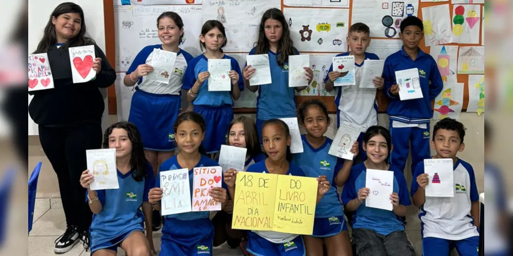 O quinto ano C da Escola Municipal Júlio de Mesquita Filho, em Jaguariaíva, da professora Patrícia Estefany Palhano, desenvolveu uma atividade sobre o Dia do Livro. A docente elenca que os estudantes embarcaram em uma verdadeira viagem pelo mundo da leitura ao conhecerem a história do tema principal por meio das obras de Monteiro Lobato.